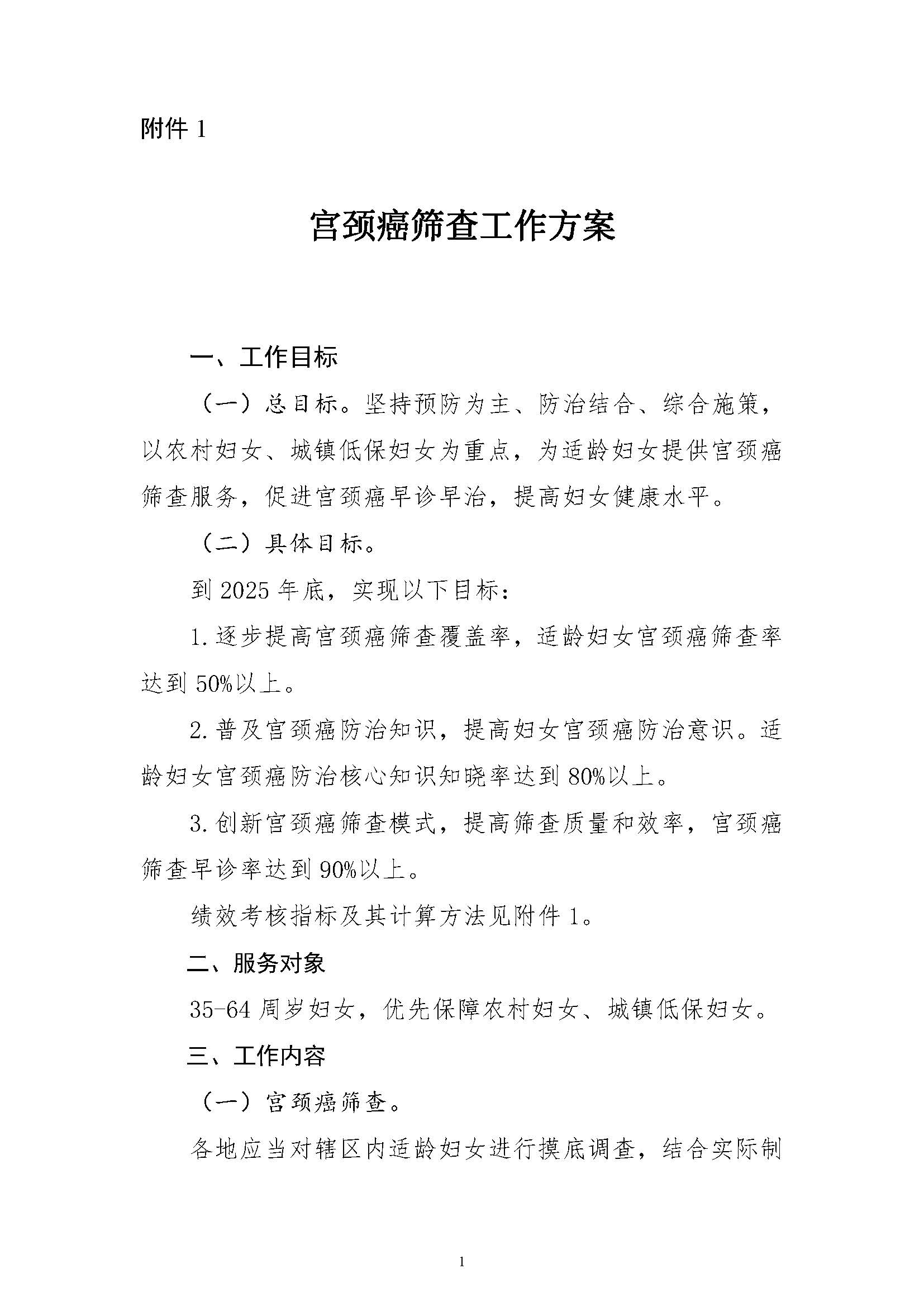 1、宫颈癌筛查工作方案: